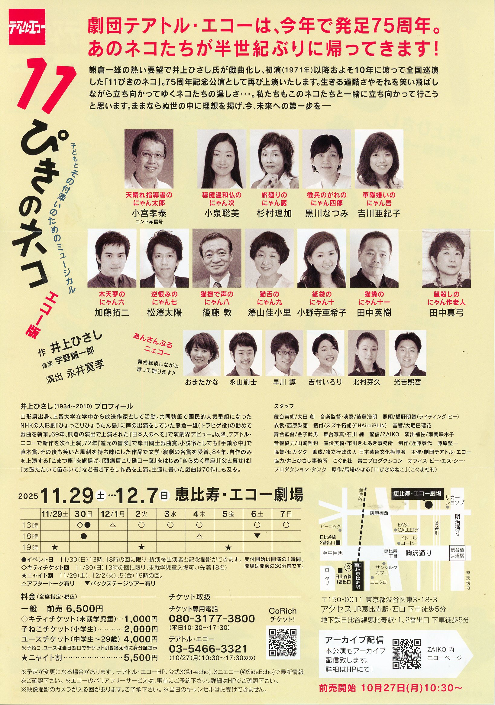 11月29日(土)-12月07日(日)恵比寿エコー劇場 劇団テアトルエコー75周年