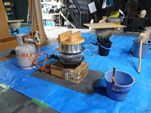 10:35 コンパネ3枚ビニールシートに石臼を滝浪と佑治さん