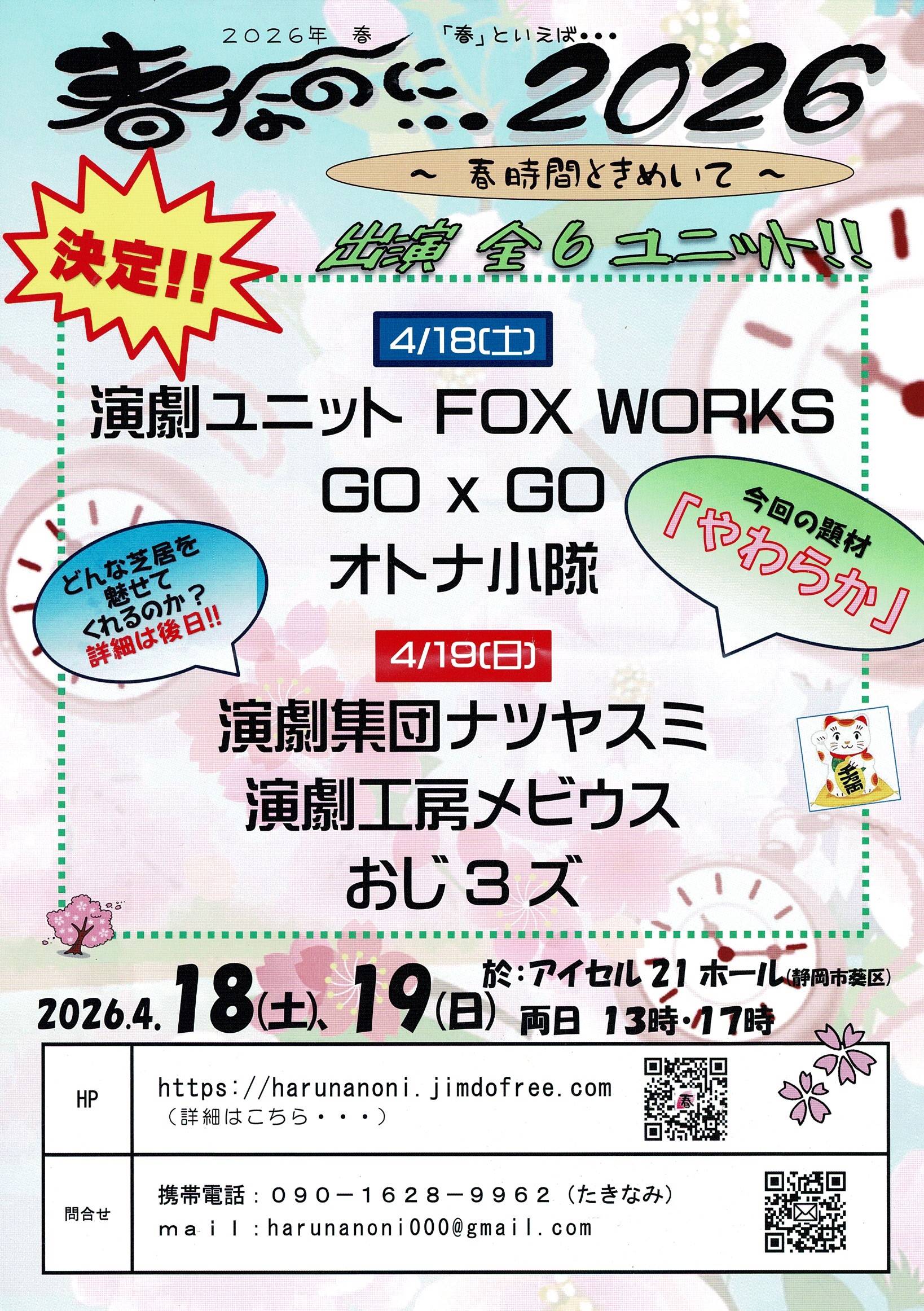 連絡先:劇団からっかぜTEL449-0937(月水土の夜) Mail:kaze@karakkaze.org @→@