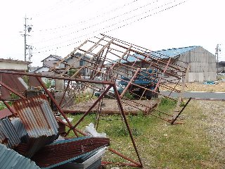 日時:2005年8月7日 午前9時頃から午後3時頃終了 場所:劇団からっかぜ東前の4坪小屋 小屋取り壊し。ts/sh/mn/ym/yf/msの6名で行いました。 いよいよ取り壊しです。トラックに気をつけて行います。 外壁を取り壊し鉄骨(私の上に振る雪はのセット?)を倒し床の骨組み(鉄骨)の解体 トラックも無事で取り壊しが終わりました。 お疲れ様でした。