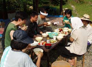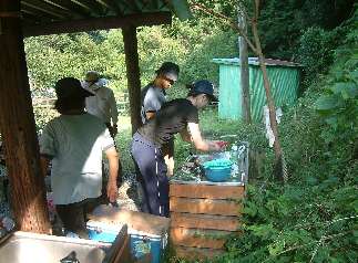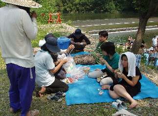 川遊び、昼食に焼きそば。午後2時頃終了、劇団で荷を片付けて解散。