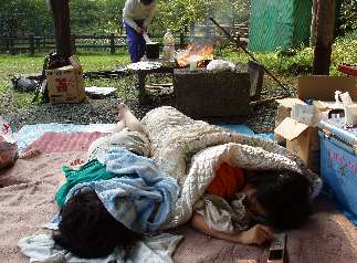 劇団で昼食を済ませ、午後2時頃氷を買ってキャンプ場に
