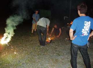 20:00過ぎ花火大会、今回はみやこだ自然学校が隣でキャンプしているで音の出る物、打ち上げ