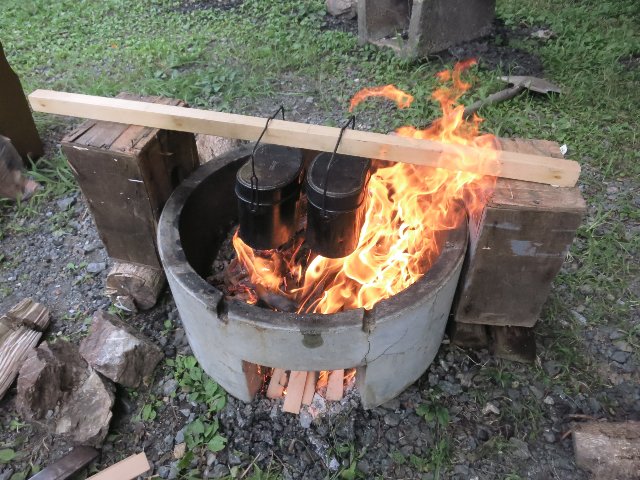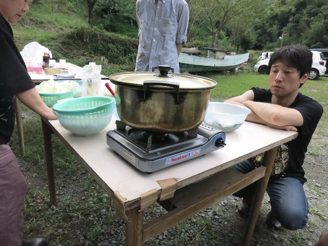 鷲沢風穴キャンプ場、カレーを作り・飯盒炊飯8合。夕方から参加者含め、19人になる。