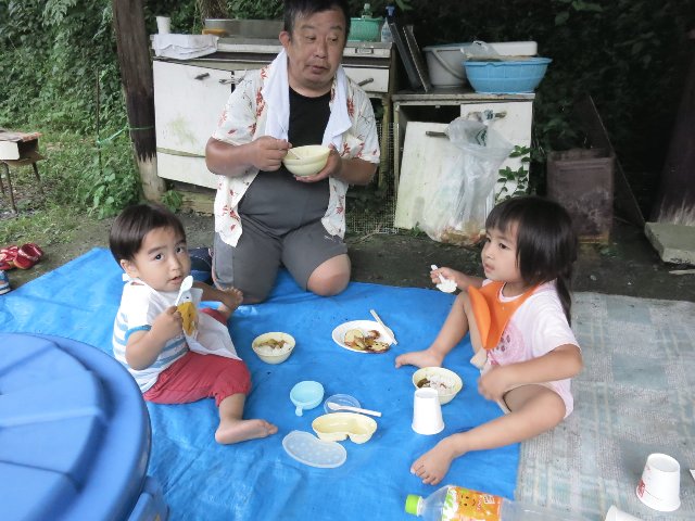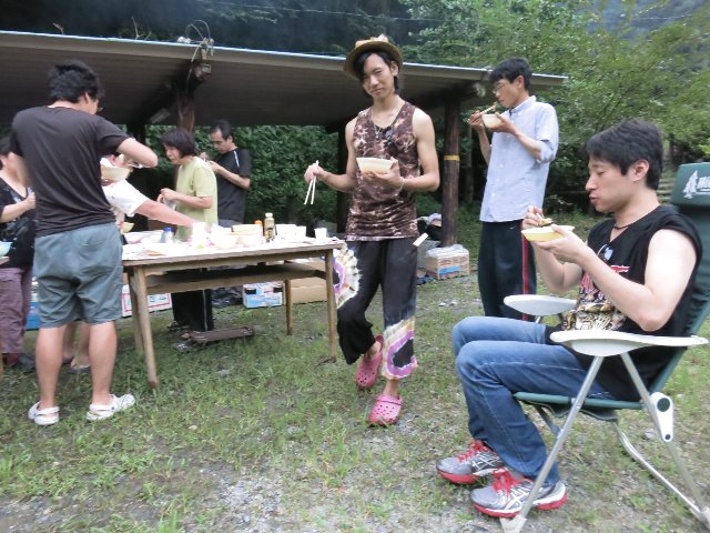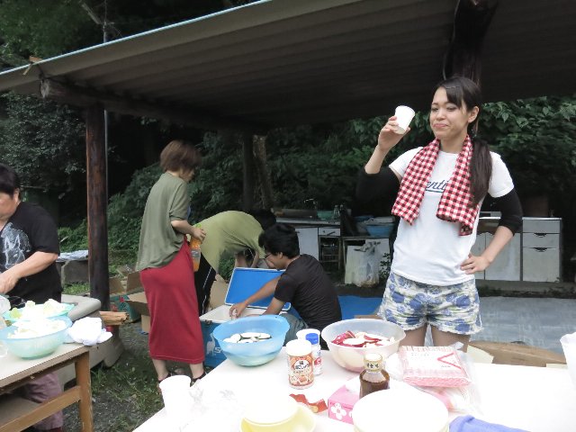 7:30朝食、新・亮・純子・山下・晴美・沙希・カド・布施、食事終わって片付け。9時に鷲沢風穴キャンプ場解散