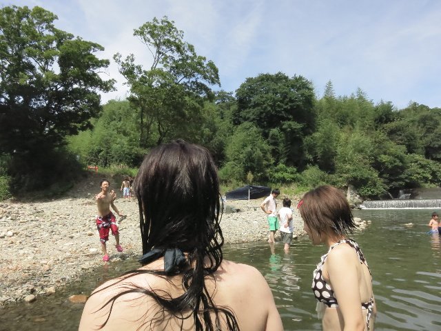 9:05都田川天竜浜名湖線鉄橋下で水遊び。亮・純子・晴美・沙希・カド・布施