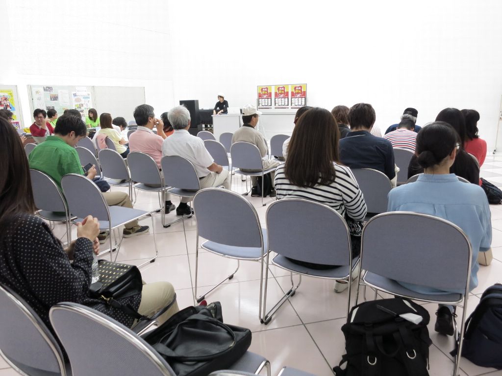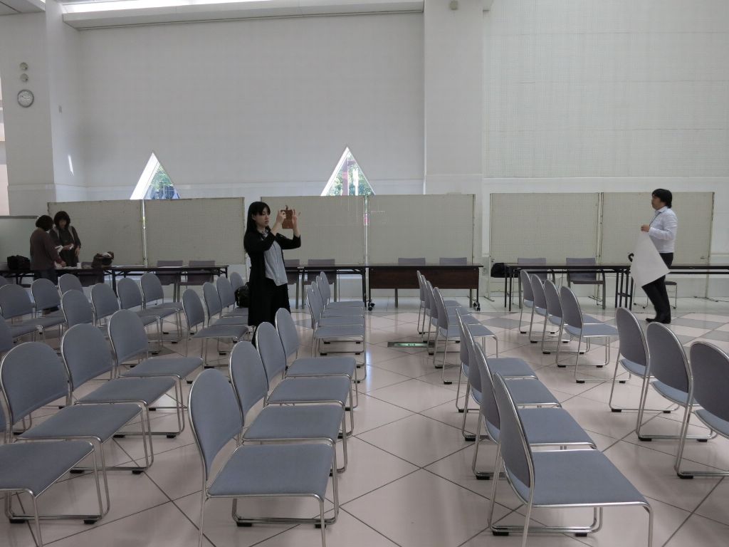 9:00-10:30会場つくり、展示ブースをパネル180cm幅、机180cm10組じゅんびする。客席をイス80席作る。