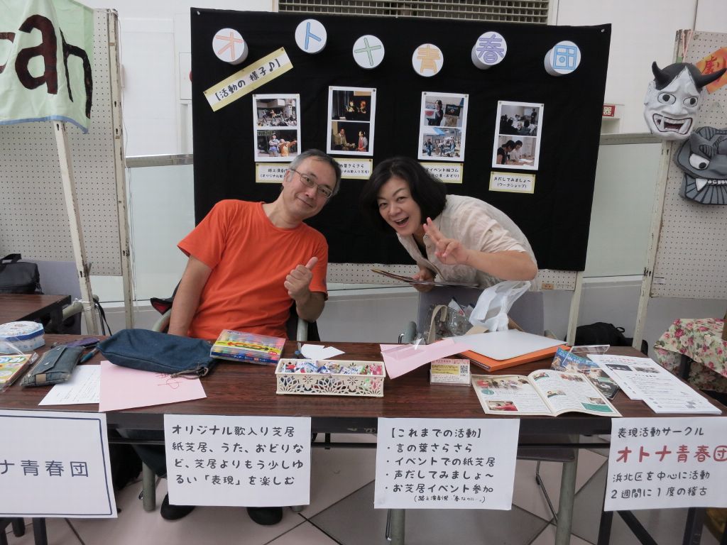 上手展示ブース、劇団からっかぜ、大人青春団、路上演劇祭、県西部演劇連絡会