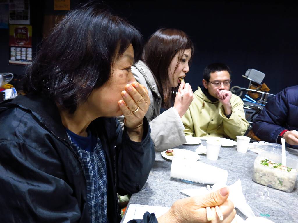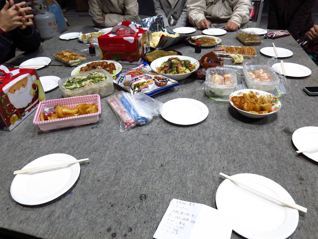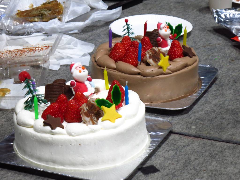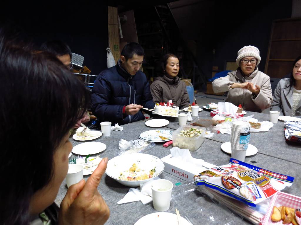 20:30クリスマス会、持ち寄りの食べ物一品で懇談。坂田岩瀬真紀子平野純子亮根津・美佳左絵子他屋山下角・高橋
