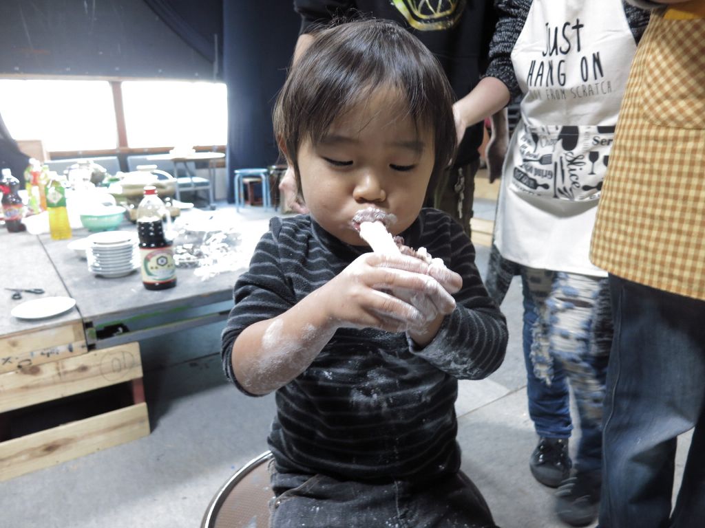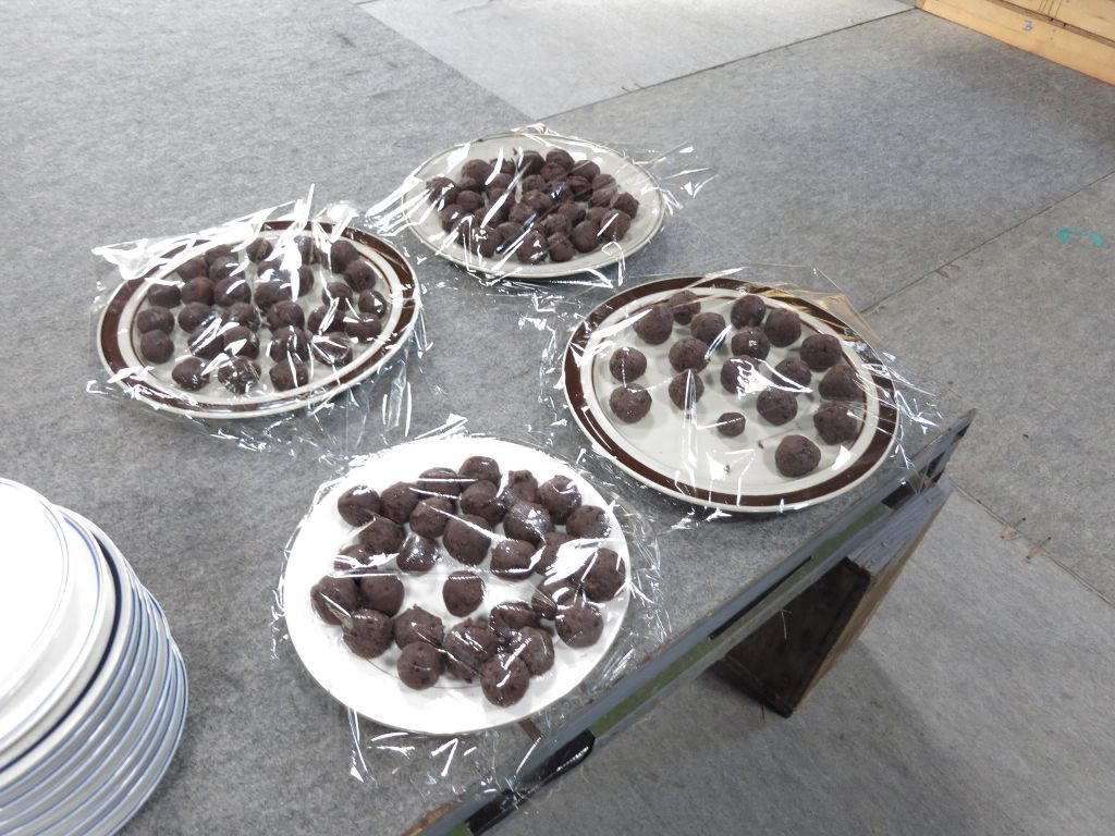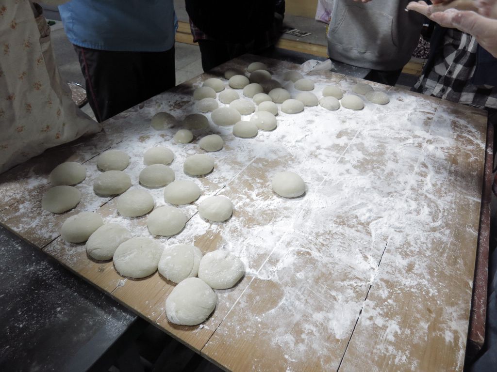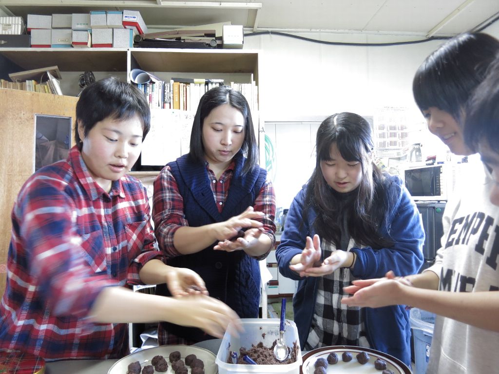 14:10餡餅用に晴美さん手製のアンコで団子つくる。