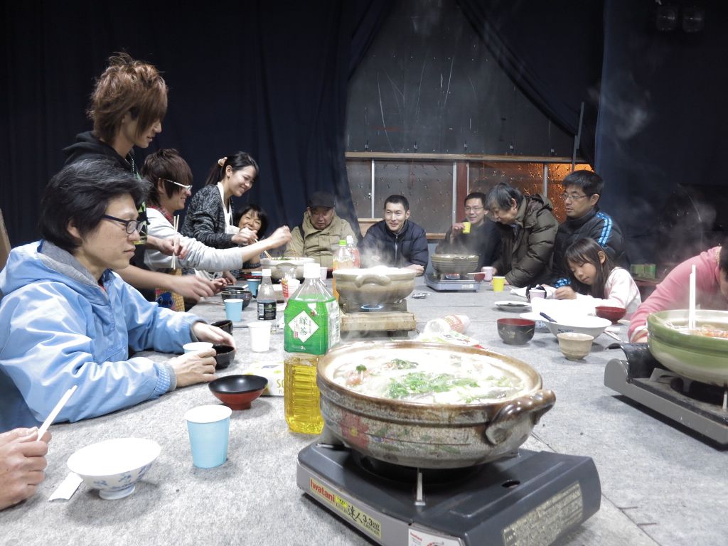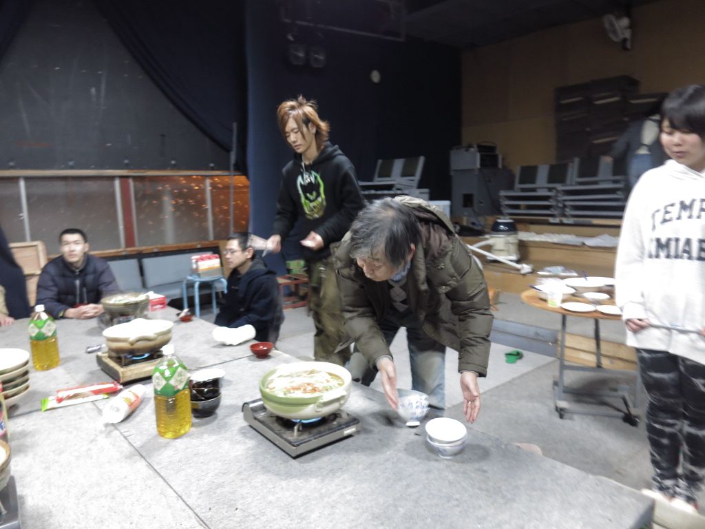 17:50亮舞監進行で、忘年会を始める。キムチ・豚骨・トマト・豆乳・普通鍋5種類。