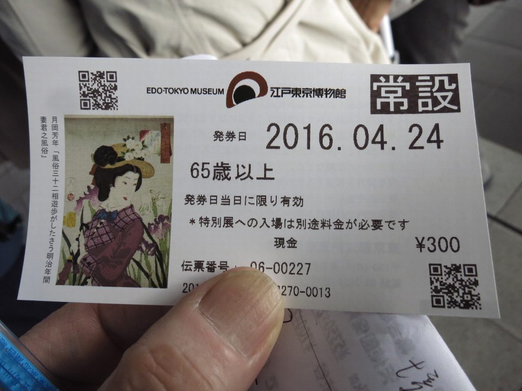 両国 大江戸博物館65歳以上300円一般600円 展示を見る。
