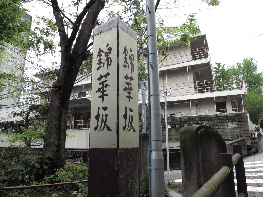 猿楽町1−1、錦華小(夏目漱石の学校) -300m歩いて-太田姫稲荷神社(位置がモデルの神社?)。