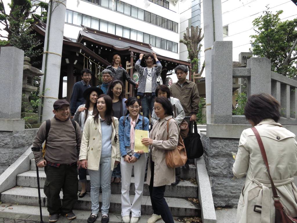 「闇に咲く花」神社ツアー、東京、錦華小・太田姫稲荷神社・ニコライ堂・神田明神・大江戸博物館に15人参加。