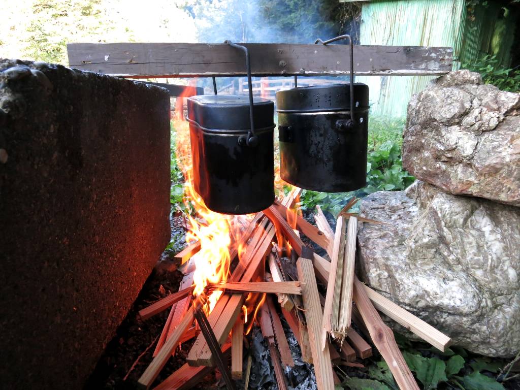 6:01かまどに火、6:18-6:30飯盒炊飯2つ8合、12分。
