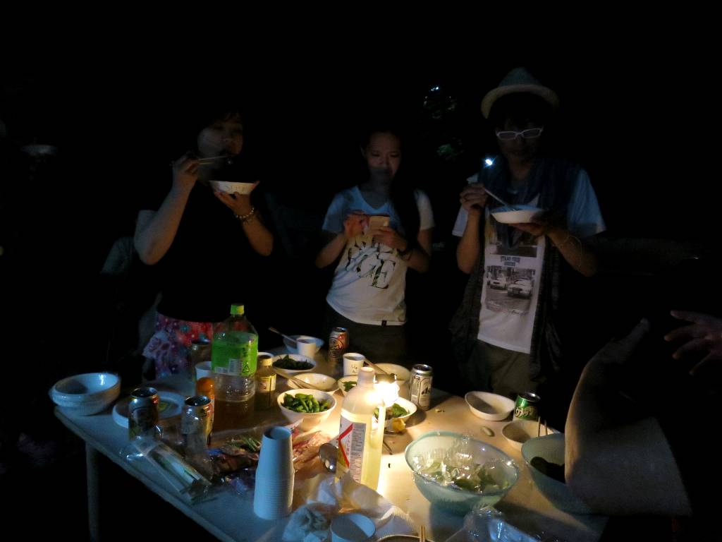 カレーを作り・飯盒炊飯8合。参加者(夕方)充生/武田/山下/桜井/小粥/辻村/里美/谷口、16人