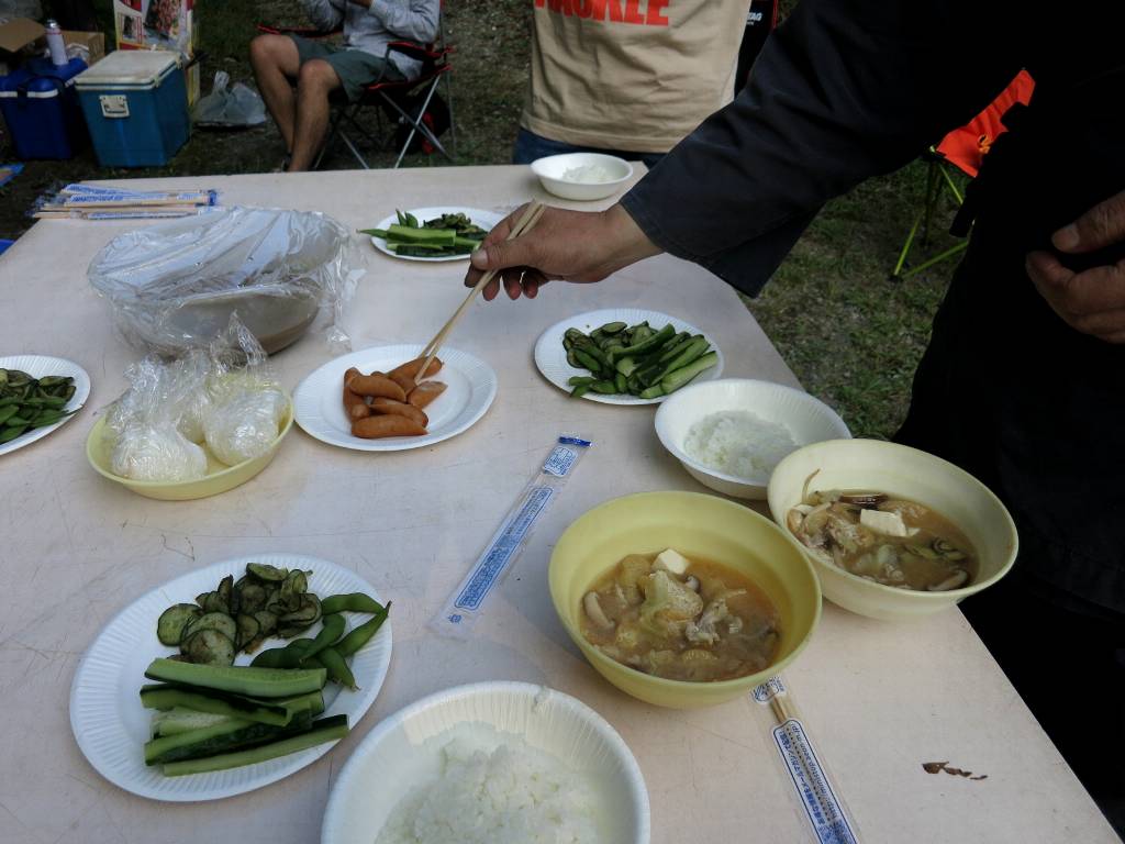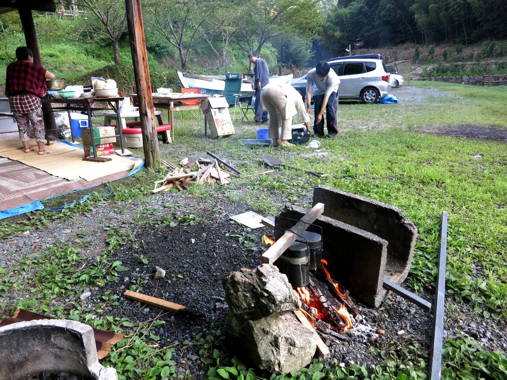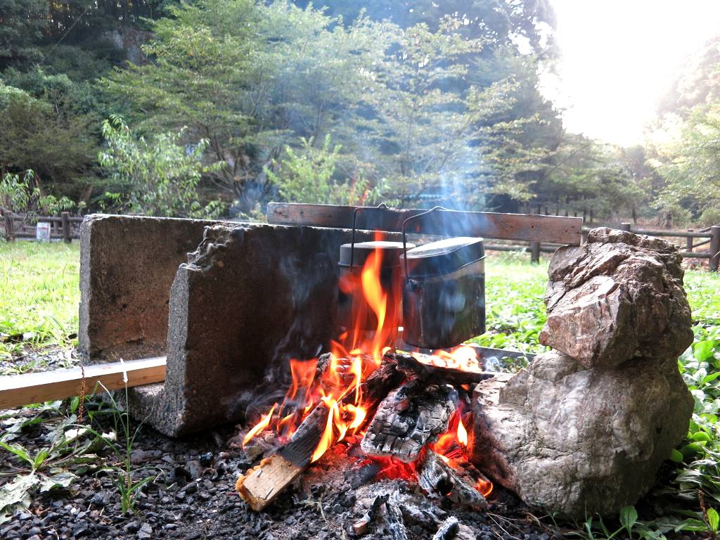 31日(日)5:50朝飯の準備。6:20飯盒2つ炊飯。6:50朝飯できて食べはじめる。