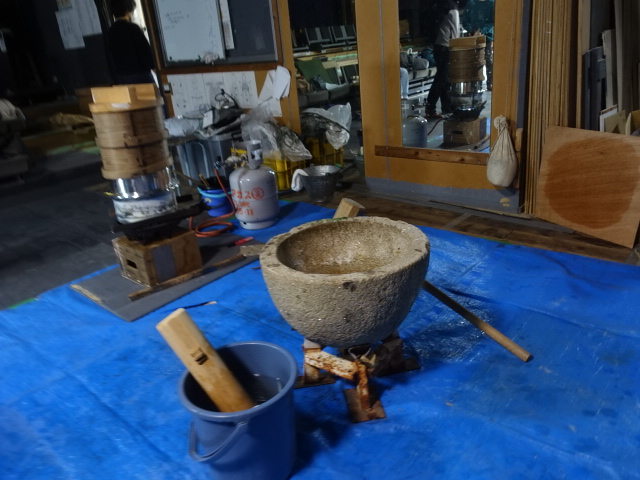 杵2つ(新婦人で杵大1つ借りる)・お釜は新品2cm大きい、真紀子さんが用意してくれました。