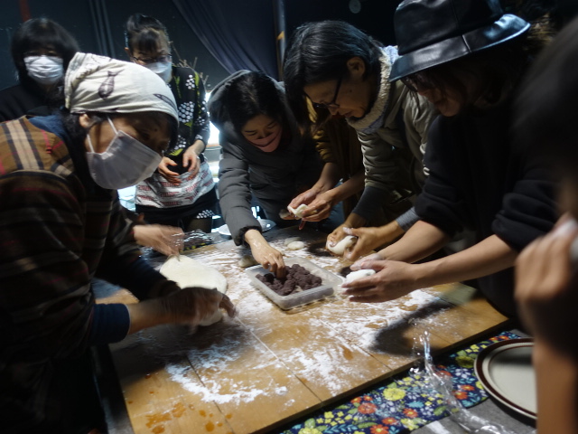 場所:劇団からつかぜ 稽古場(アトリエ)で劇団員と家族とOBのファミリー他が集まり、合計35人で盛況にできました。