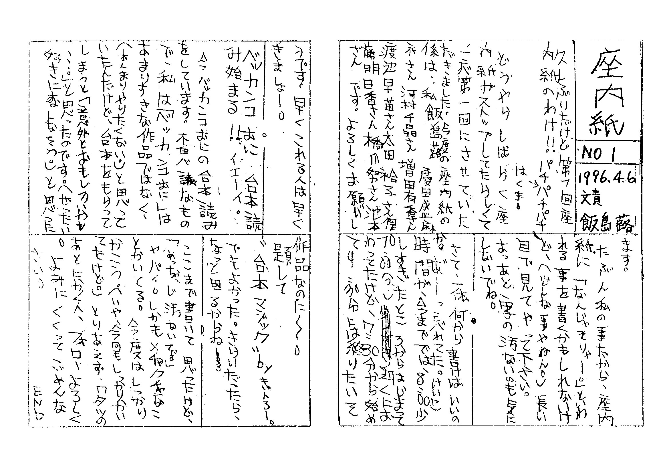 1996年4月6日発行 座内誌No01 文責:飯島蕗