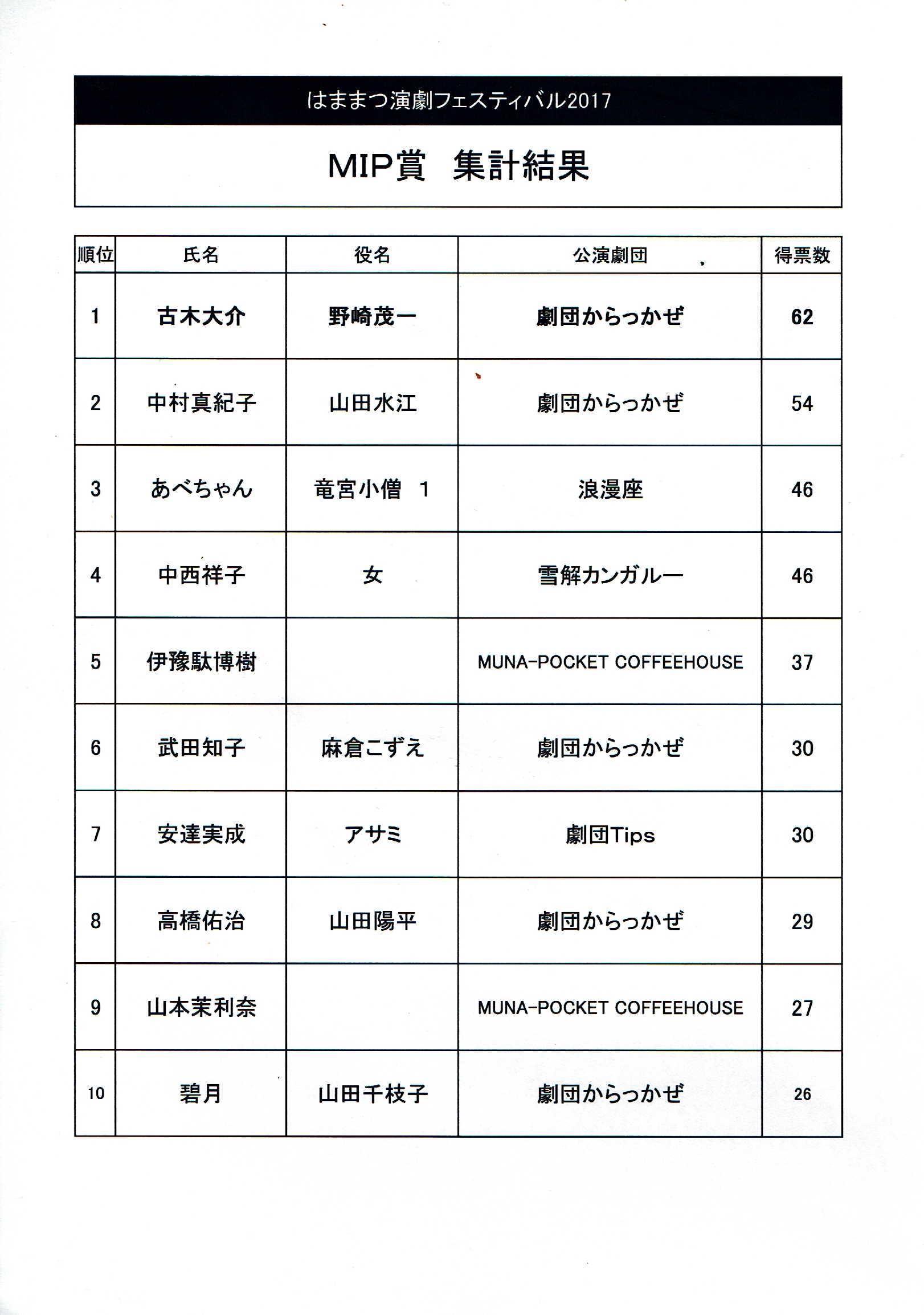 第57回浜松市芸術祭はまままつ演劇・人形劇フェスティバル2011 主演女優賞:飯島けい子受賞 MIP賞中村真紀子
