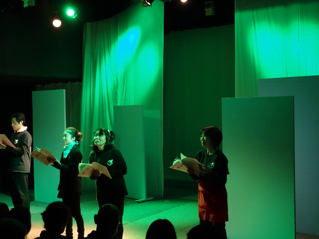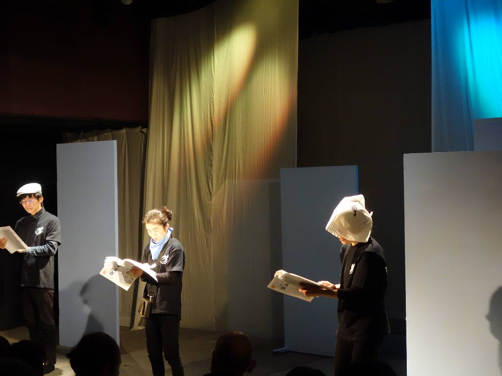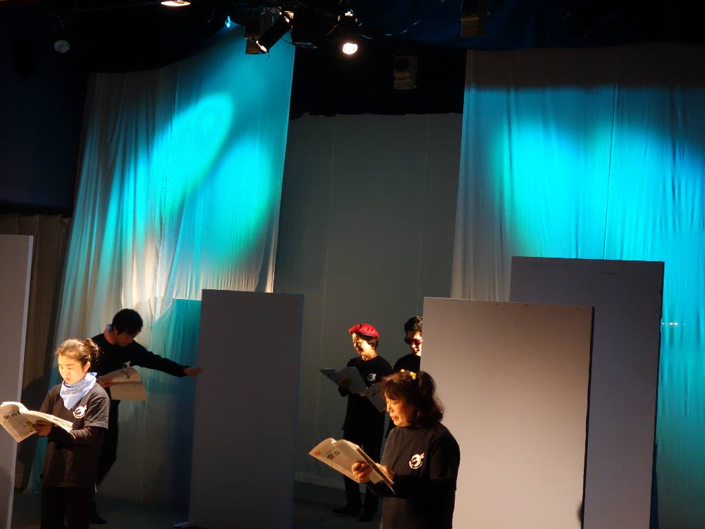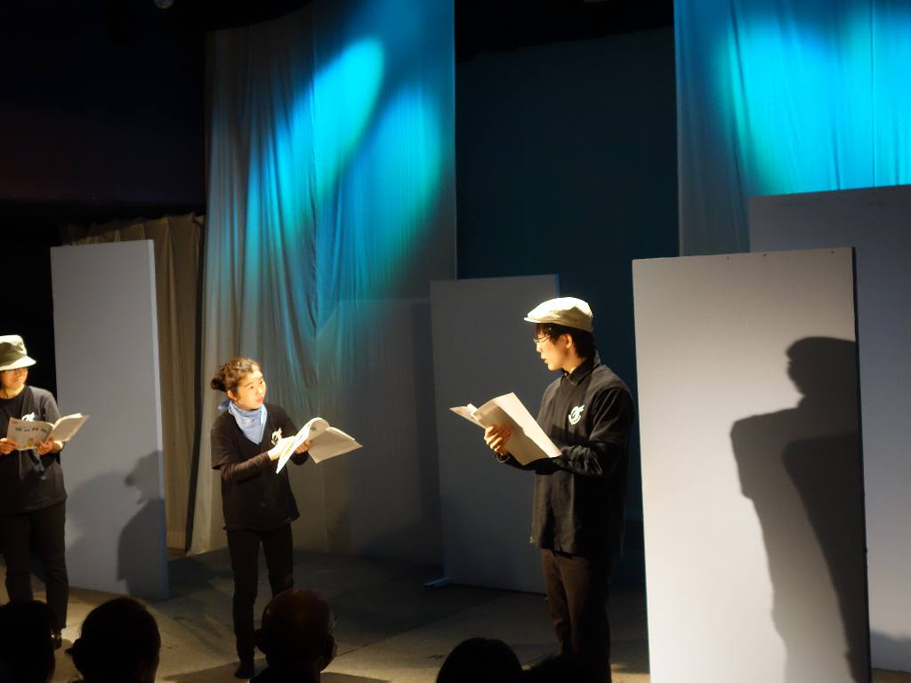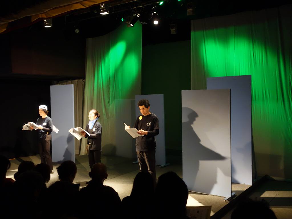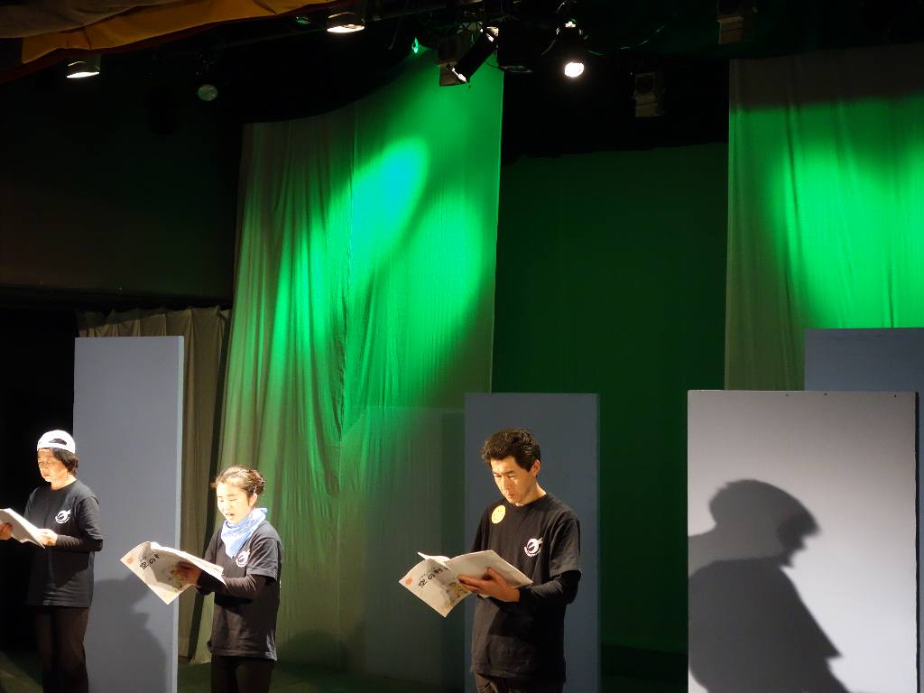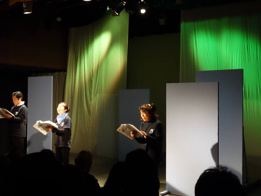 ○朗読劇でアクションはあまりなかったですが、衣装もセットもあのままで、台本なしでやったほうが良かったと思います。年の方が小学生を演じていましたが、気になりませんでした。演劇の魅力だと思います。また、8年たってもまだまだ復興とは思えない状態でも、だんだん忘れ去られていくように感じます。そのような時に、子供を主役にしてわかりやすく伝えるのも演劇の力だと思いました。