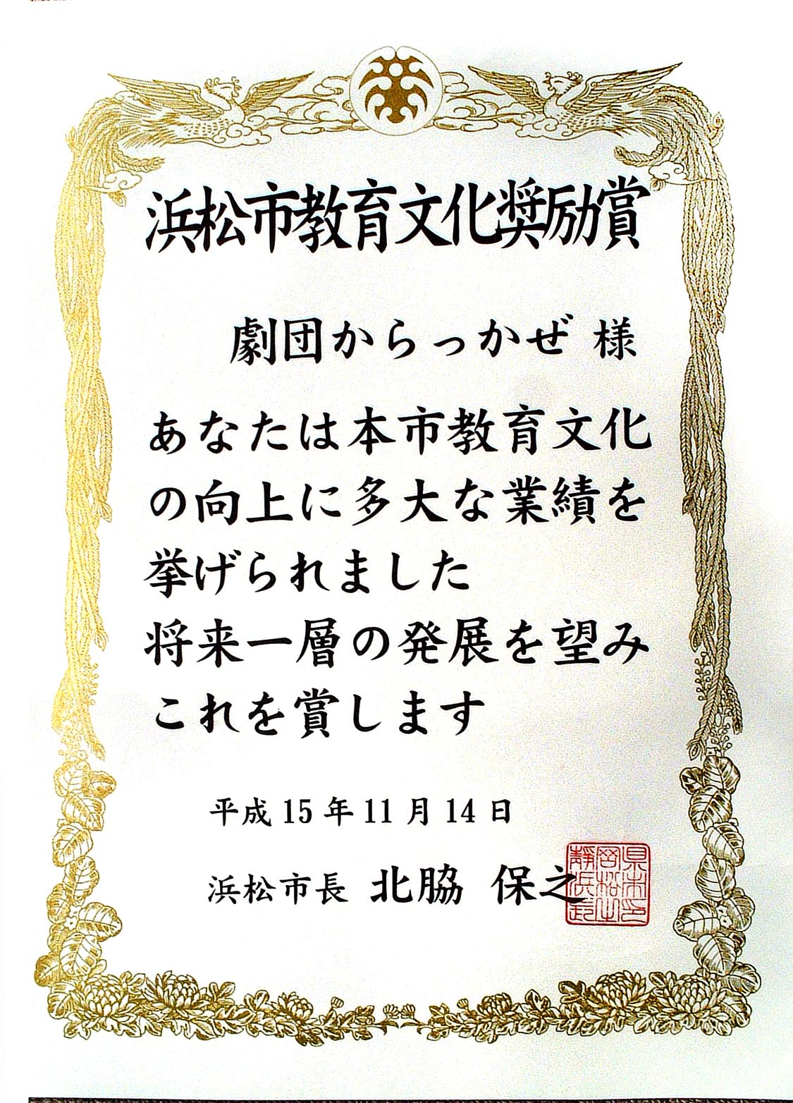 2003年11月14日 浜松市教育文化奨励賞受賞